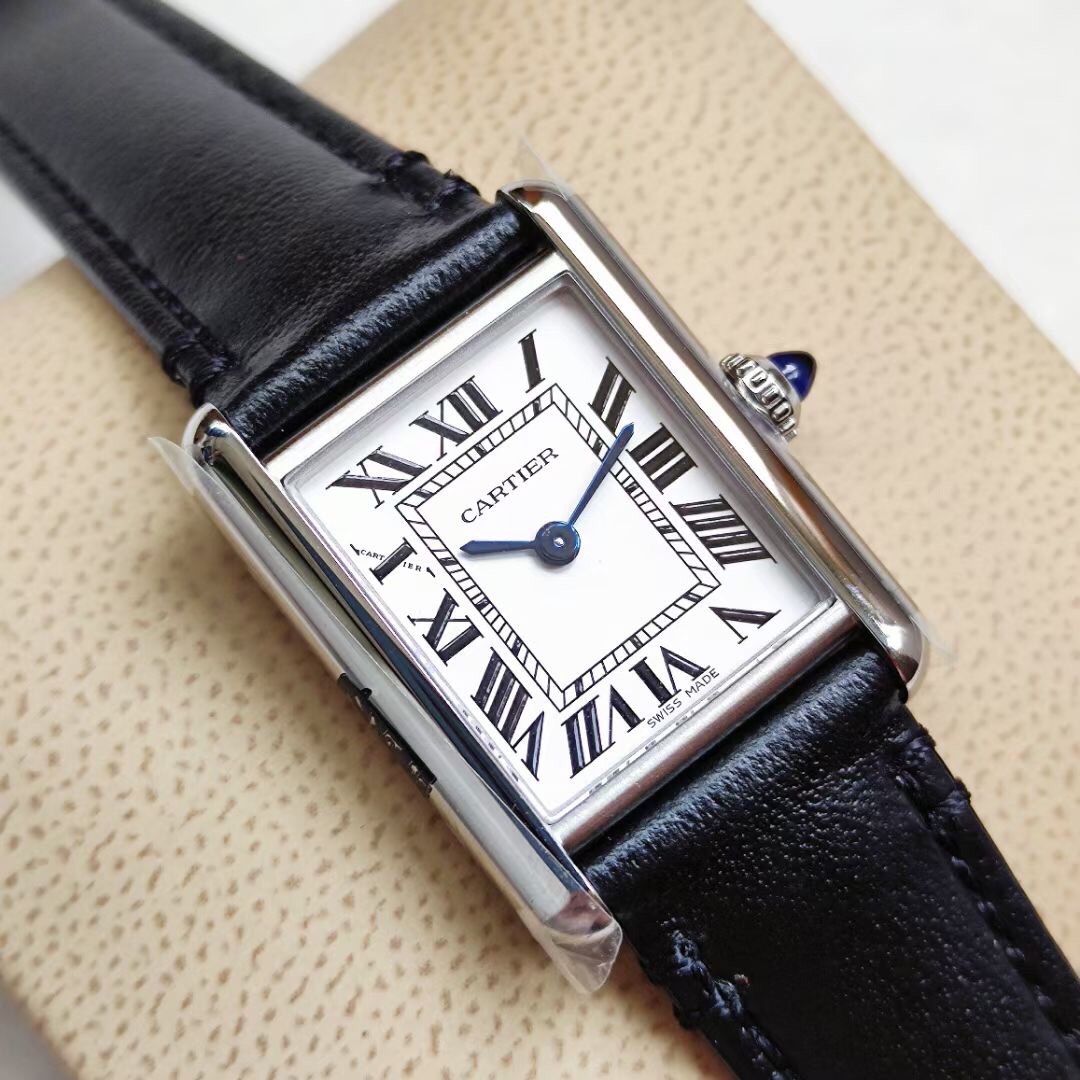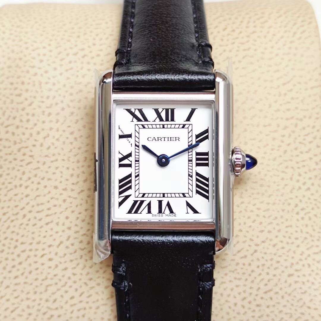 Cartier – Tant Must Small SS/LE White dial On Black Leather Strap K11F Quartz