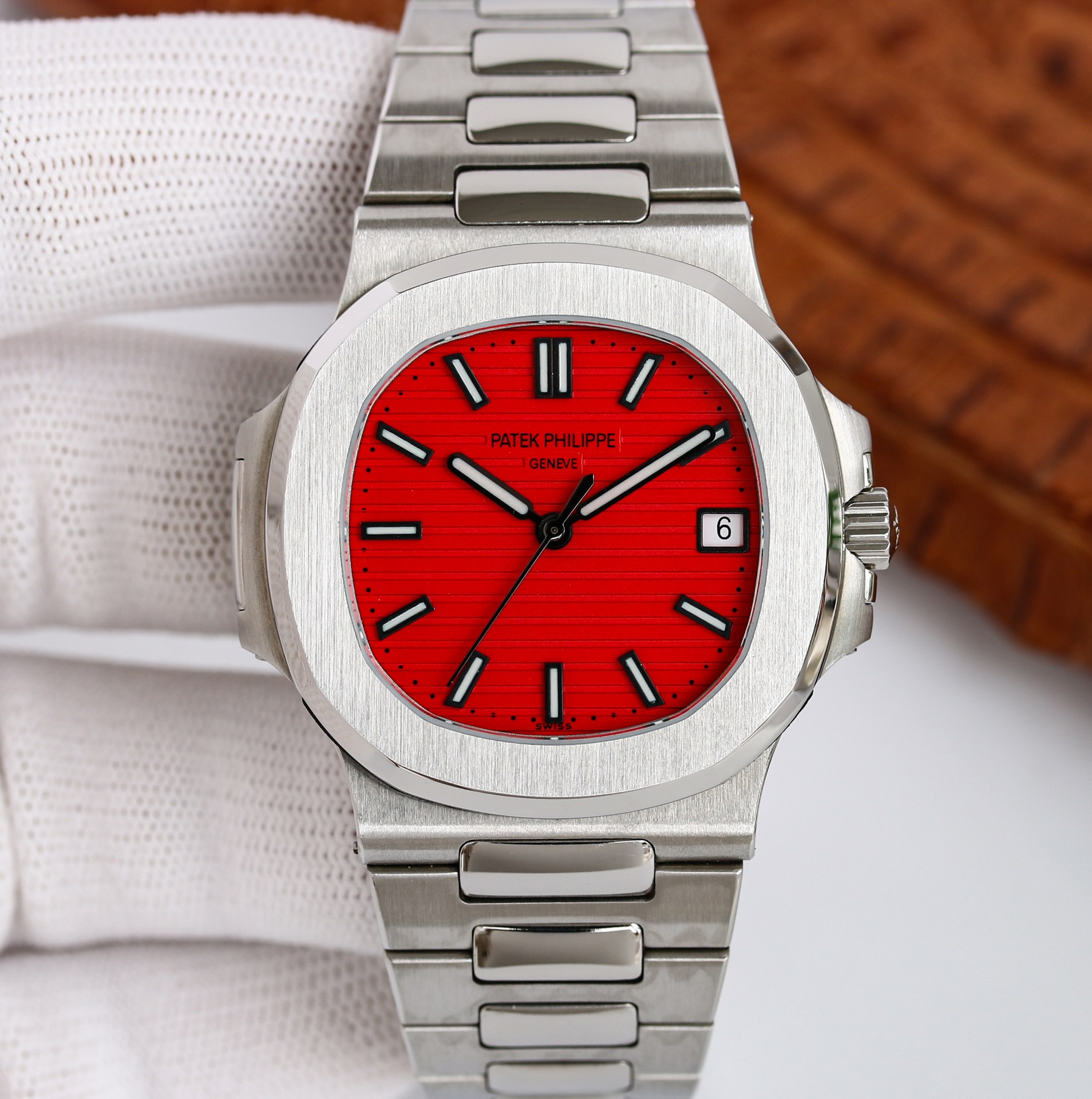 DIAL COLOR: Red Dial with Stick Markers (Swiss Grade Superlume on Needles)