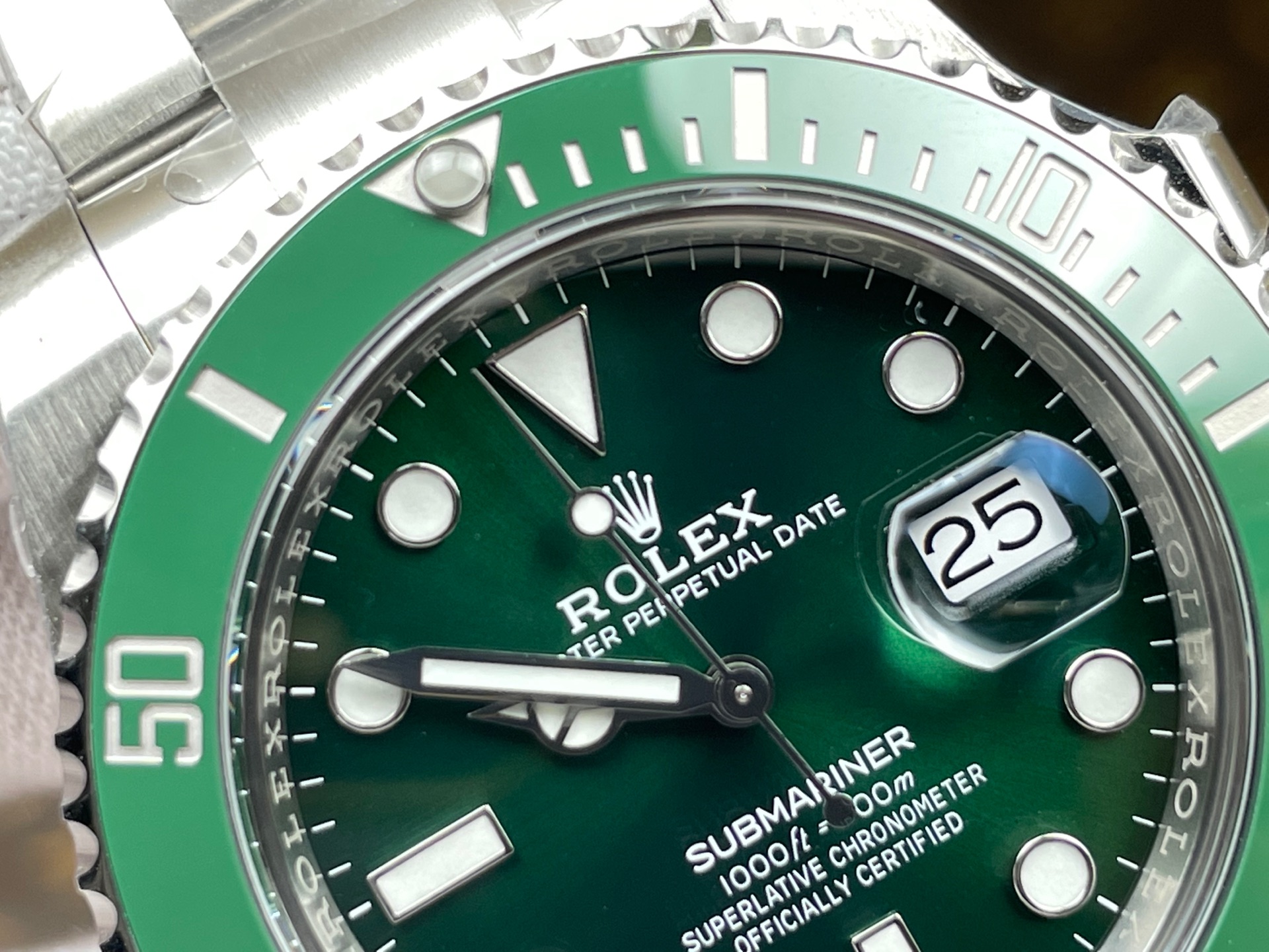 BEZEL: Green Uni-directional Diver Ceramic Bezel, Anti-Clockwise (With Superlume on Bezel Dot)