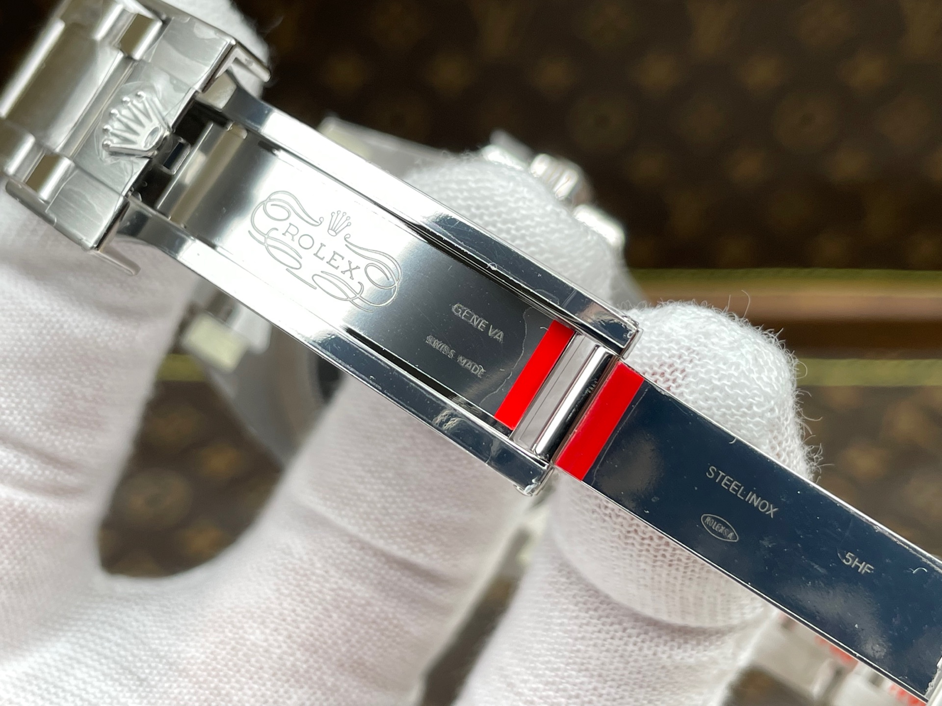 FRONT GLASS: Sapphire Crystal (Same thickness as Genuine) – Etched crown at 6:00 position
